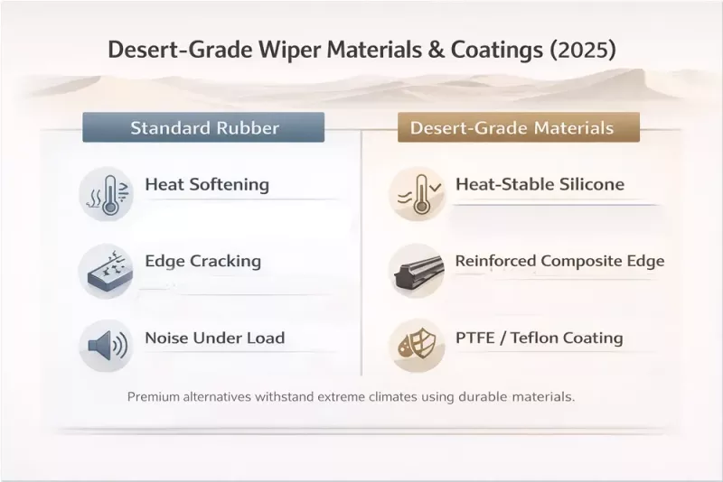 For distributors, this creates a paradox: demand is steady, but the wrong SKU mix can freeze cash flow. Desert climates magnify rubber aging and edge erosion. Heat softens conventional compounds, sand shreds unreinforced edges, and the result is familiar: streaking, chatter, noise, and early blade failure.