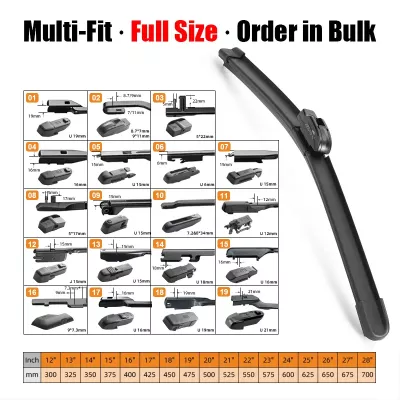 Each spray wiper blade comes with 19 adapters, covering about 97% of vehicles. You can stock one SKU and serve multiple car brands — a big advantage for wholesalers and auto stores that want to simplify inventory.